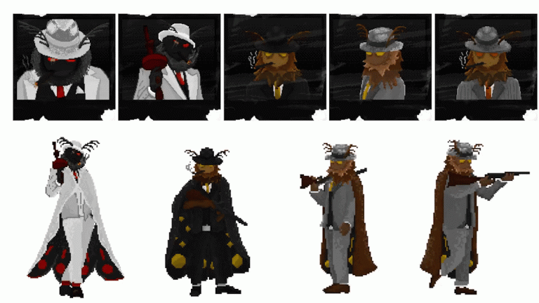 DiMothia is a 2.5D pixel platformer. It’s about the protagonist a flying fox detective named Kieran, who fights against moths in the course of the story while solving a crime. The moths are the local mafia and threaten the tranquility of the small fishing town. Overall, the game is supposed to exude detective noir vibes and thus be focused on the story.